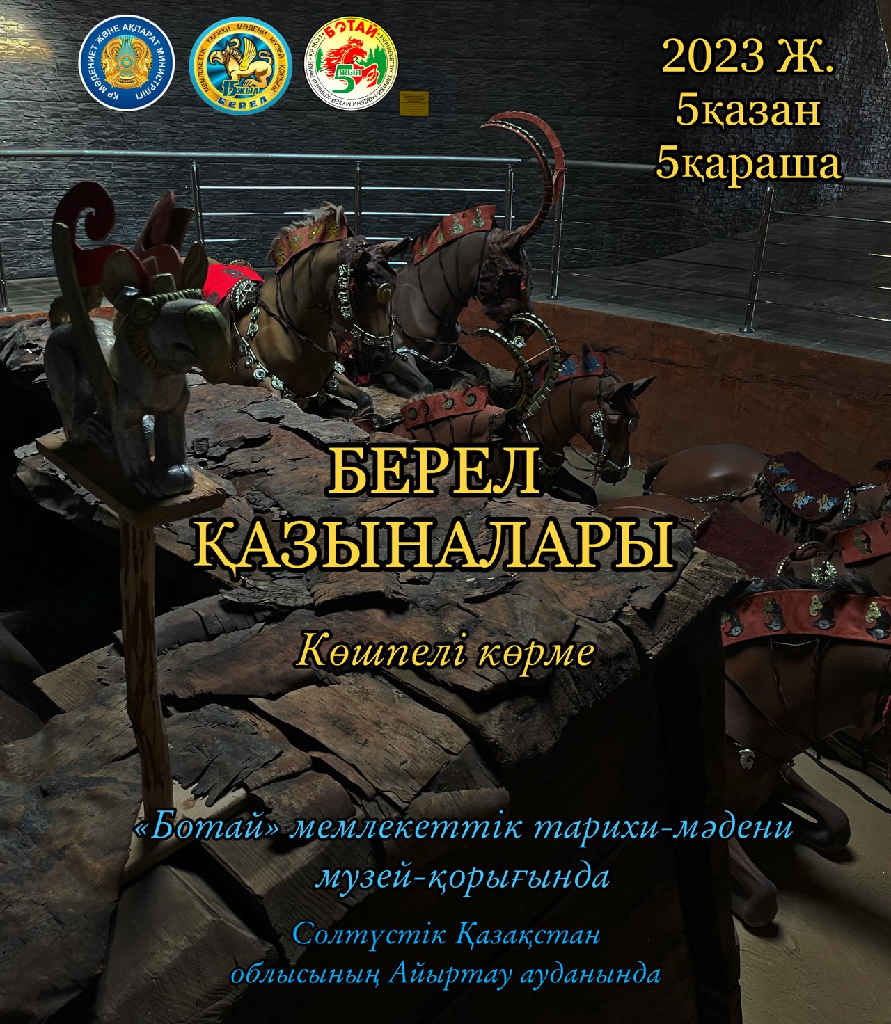 “Берел” мемлекеттік тарихи-мәдени музей-қорығының 15 жылдығы мен “Ботай” музей қорығының 5 жылдығы аясында Солтүстік Қазақстан облысы, Айыртау ауданы, Саумалкөл ауылында “Берел қазыналары” атты көшпелі көрменің ашылу салтанаты өтті.