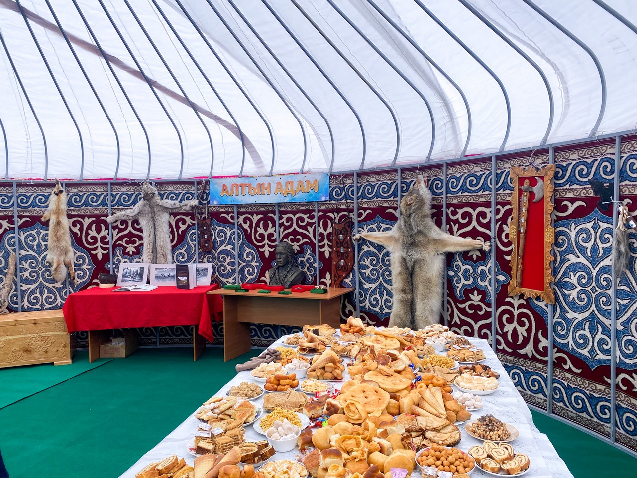 «Ұлыстың ұлы күні» мерекесіне орай, Катонқарағай ауылдық орталық алаңында киіз үй тігіліп, «Алтын адам» атты көшпелі көрме ұйымдастырылып, дастархан жайылды.