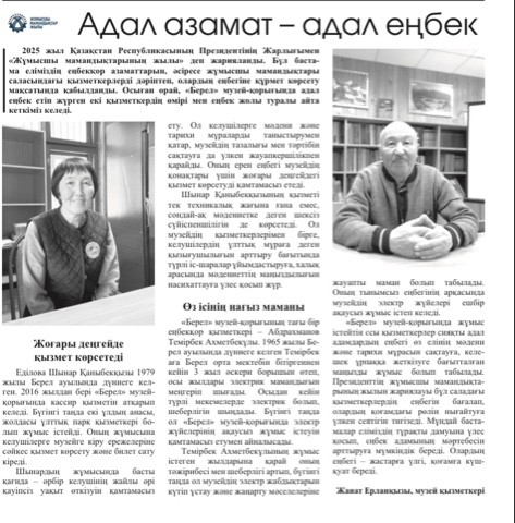 “Берел” музей-қорығы 2025 жыл жұмысшы мамандықтарын насихаттау мақсатында – бірқатар қызметкерлерді “Адал азамат-Адал табыс” атты бейнероликтермен таныстырған болаатын. Арайлы Катонқарағай газетінің жаңа санында толығырақ👆