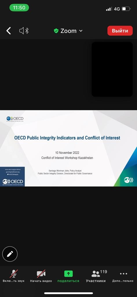 Академия Государственного управления при Президенте РК, провели семинар на тему: укрепление добросовестности в государственном секторе: управление конфликтами интересов. 10 ноября 2022г.