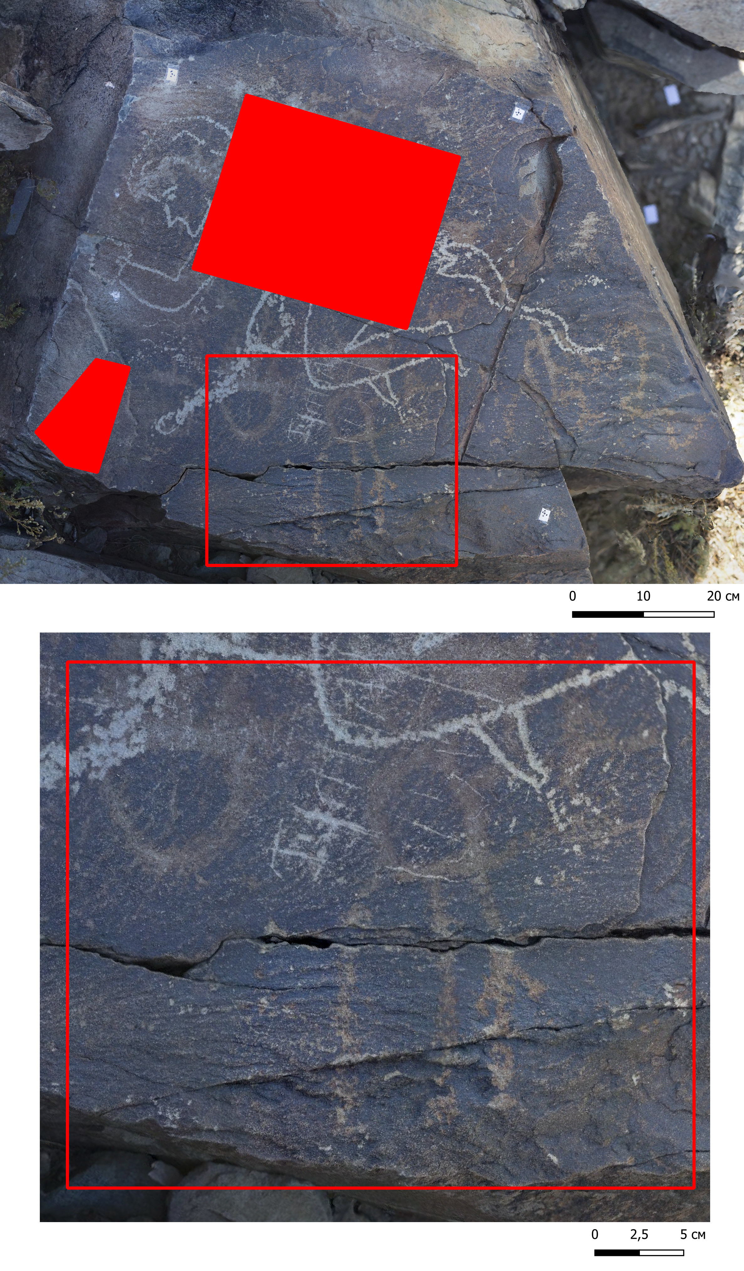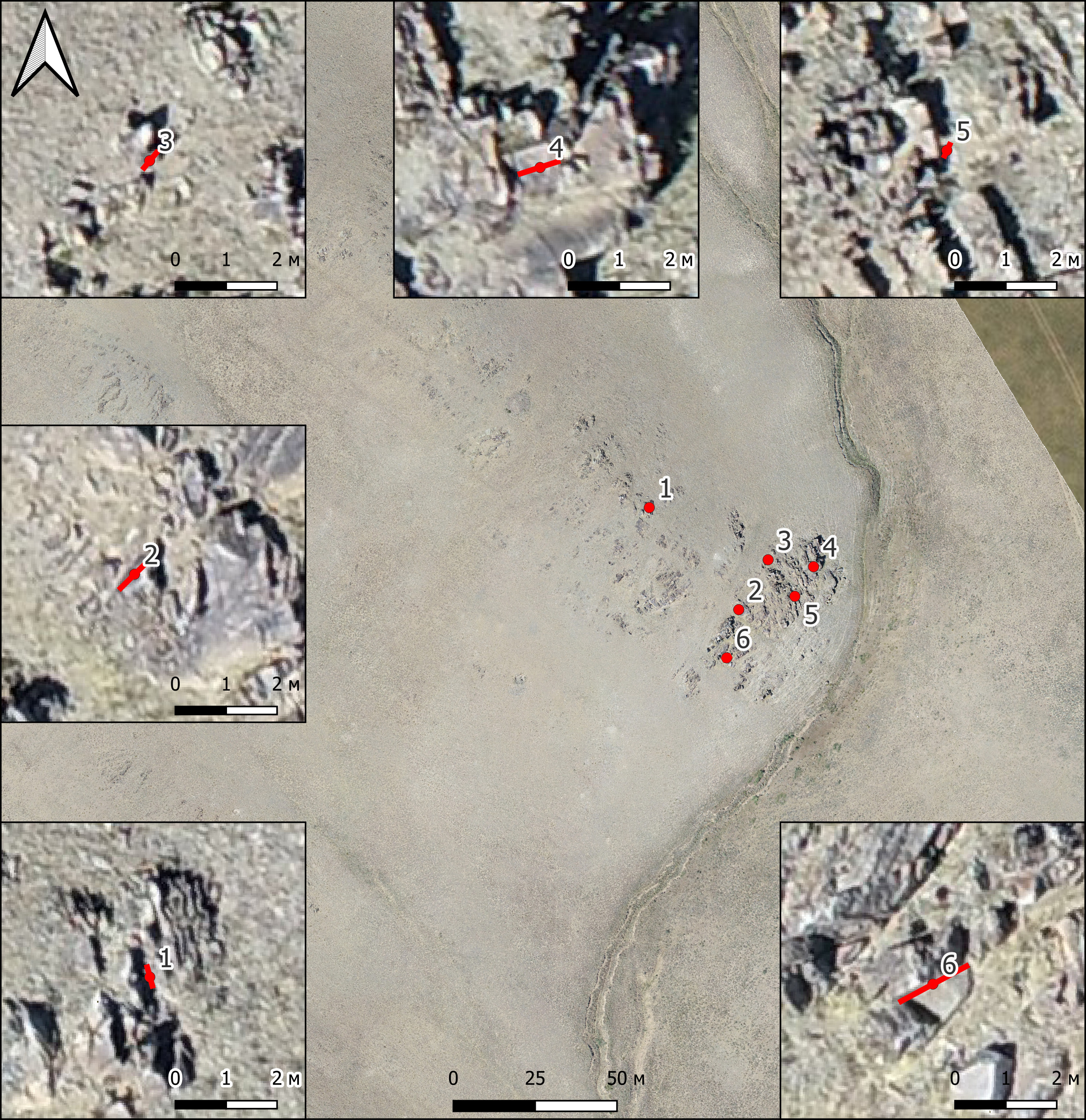 Түлкіне петроглифтері (Сурет 1). Ескерткіш Күршім ауданы, Бесжылдық ауылынан солтүстік-шығысқа қарай 850 метр жерде, Күршім өзенінің сол жағалауында төбесі тегіс биік төбелерде орналасқан. Бұл төбелердің үстінде жақпар-жақпар болып қатпарлы тау жыныстары көрініп, жалаңаштанып жатыр. Осы ырсиып жатқан қатпар тастардың беттерінде, 1,5–2 шақырым радиуста әртүрлі кезеңдердегі жартас суреттері.