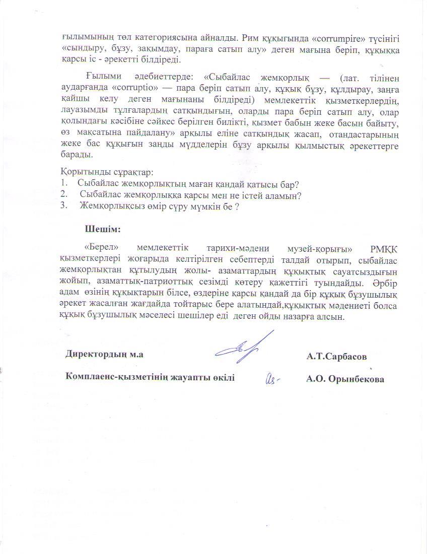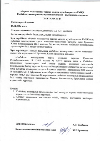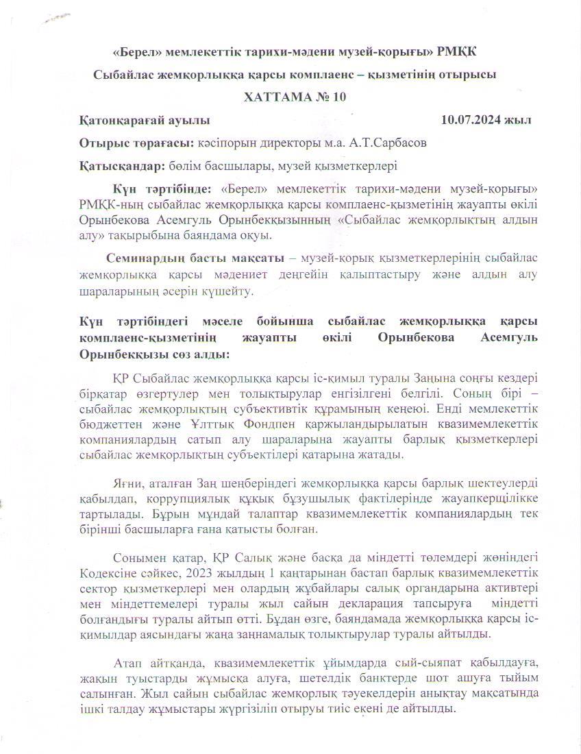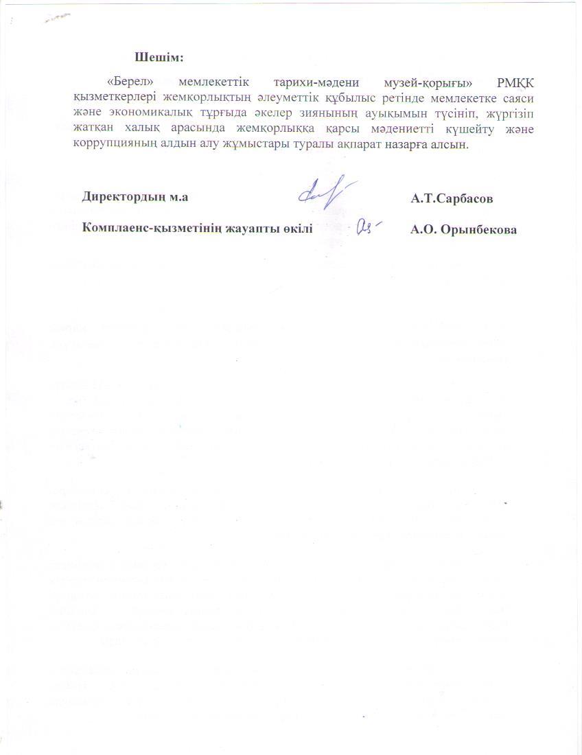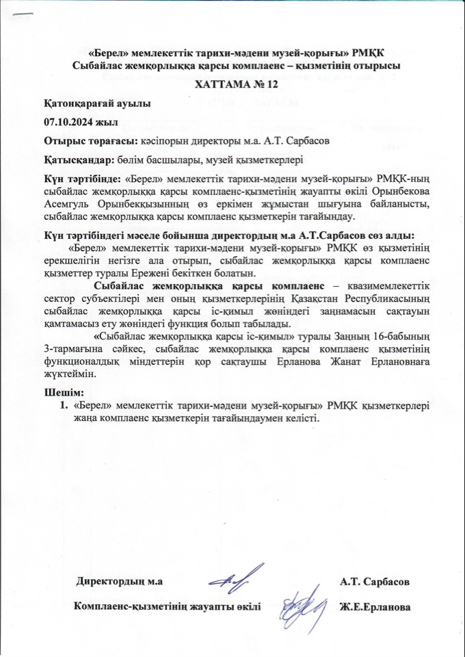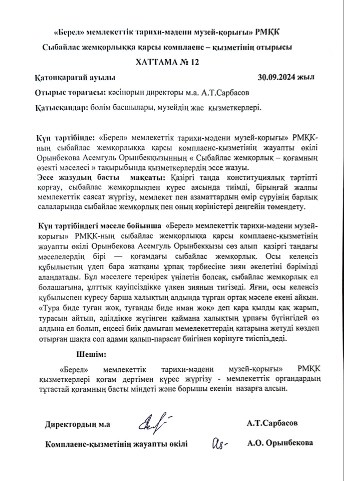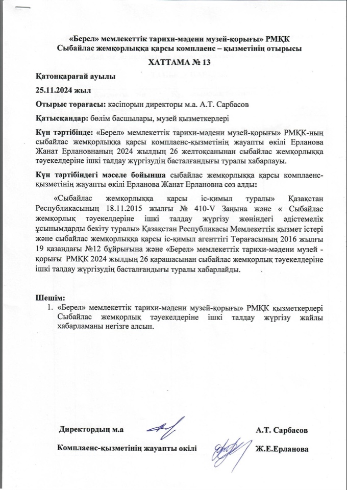 В РГКП» Государственный историко-культурный музей-заповедник» Берел " проведен внутренний анализ коррупционных рисков за 2024-2025 годы.